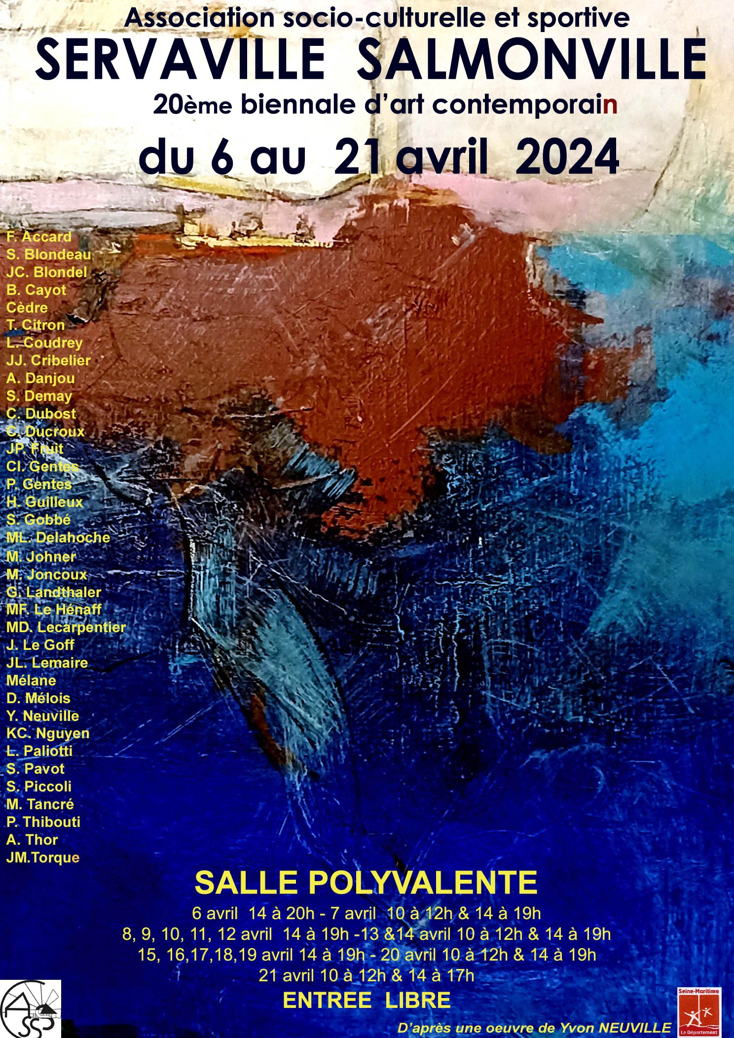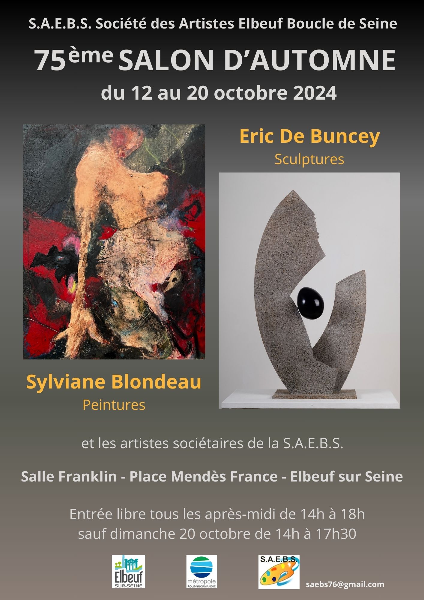 Invitée d'honneur en peinture cette année, Je serai présente tout le temps de l'exposition et vous y accueillerai avec plaisir.